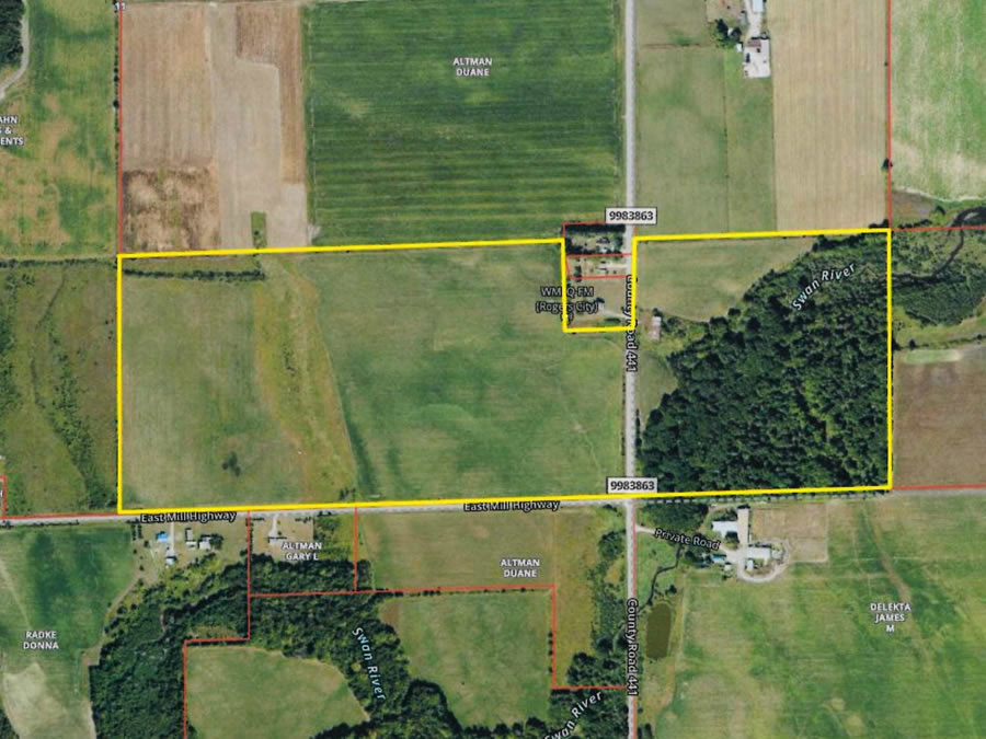 115 (+/-) acre row crop farm located on the Swan River in Preque Isle County consisting of 2 parcels on either side of County Road 441. The western parcel is approximately 75 acres of 90% tillable flat land with a grassy draw making up the balance. Fields have been rotated between potatoes, soybeans, and wheat. The eastern parcel is 40 acres with some tillable land, a barn, woods, and the Swan River running through it. The eastern parcel would make a beautiful homestead or retreat, and also provides prime hunting opportunities. The parcels are a half mile from the Rogers City Country Club and Golf Course as the crow flies, just over a mile to scenic Highway 23, and 6 miles from downtown Rogers City and Lake Huron beaches. This is a fantastic piece of farmland and picturesque homestead opportunity that won’t last long on the market, so call or email today!