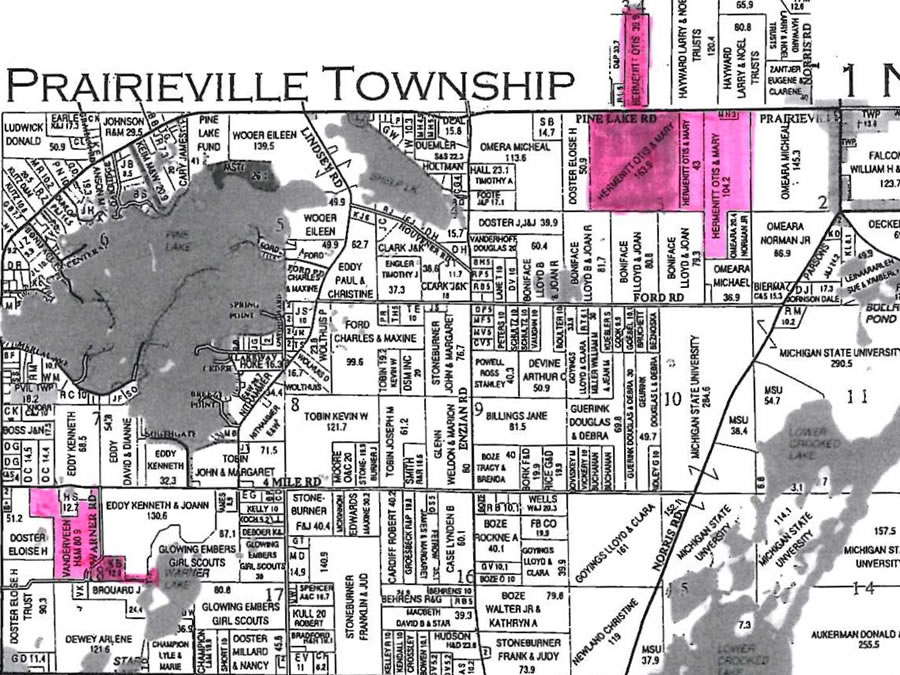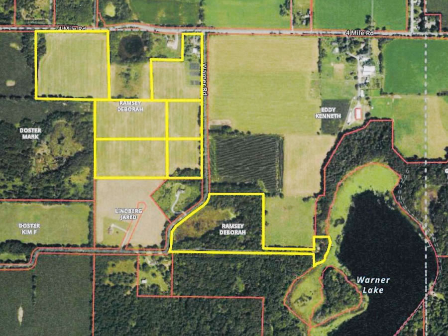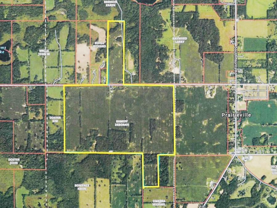The property is in two locations with close proximity to one another. First location is half mile south of Pine Lake. Second location is one mile west of Prairieville on Pine Lake Road.